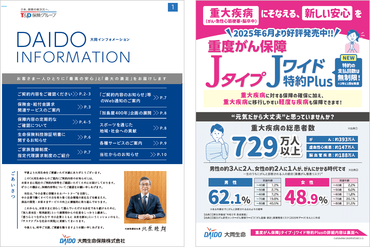 個人契約者の「2025大同生命からのご案内」を順次お送りいたします