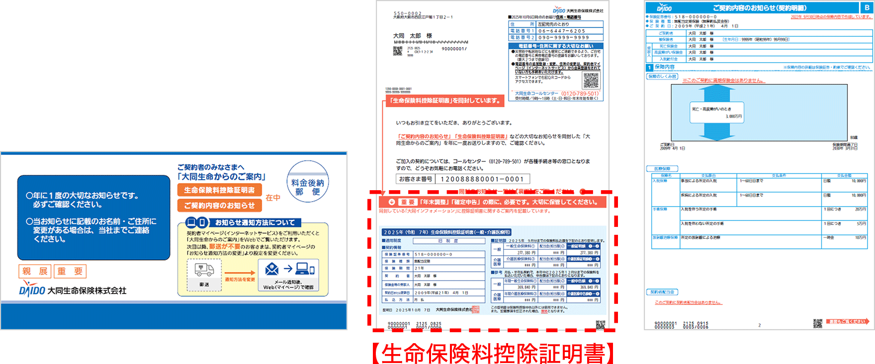 「生命保険料控除証明書」や「ご契約内容のお知らせ」を同封していますので、ご確認・ご活用ください。※生命保険料控除制度の概要等はこちらからご確認いただけます。