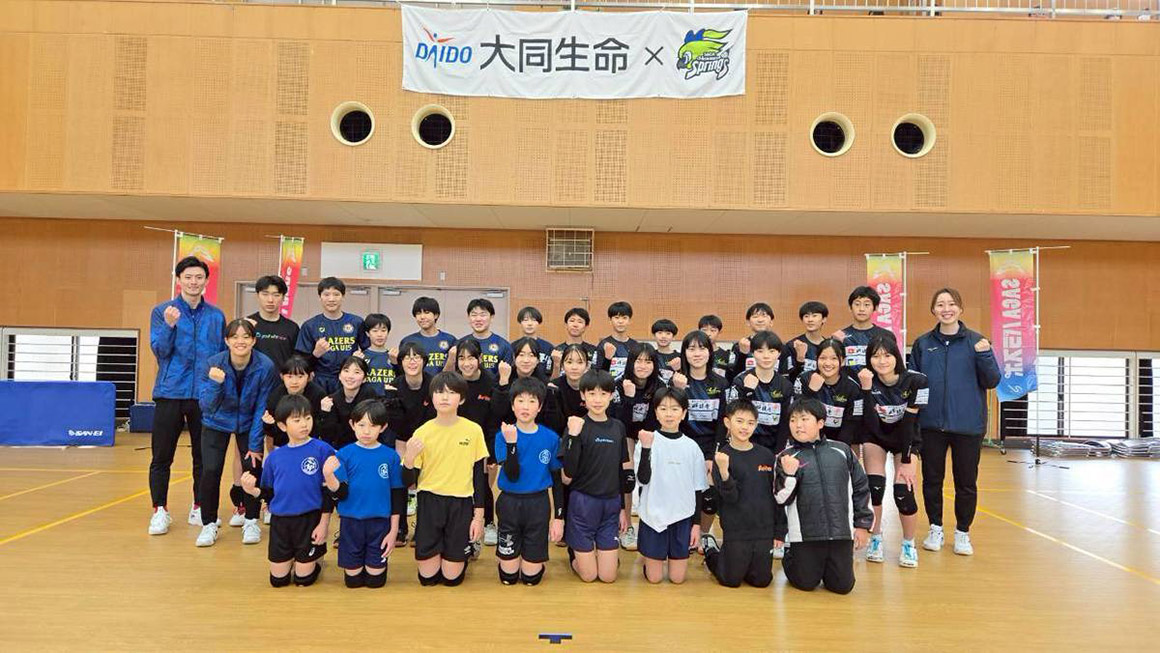また本大会の開催にあわせて、当社は大同生命SVリーグ・女子バレーボールクラブ「SAGA久光スプリングス」とともに、県内の小中学生によるバレーボールクラブを対象としたバレーボール教室を開催。SAGAパラスポ2025の盛り上げに貢献しました。