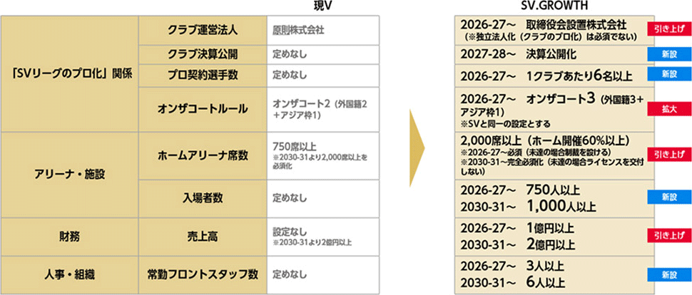 2026-27シーズン以降、運営法人の株式会社化や、選手の過半数をプロ契約とするなどの厳格な基準が設けられます。